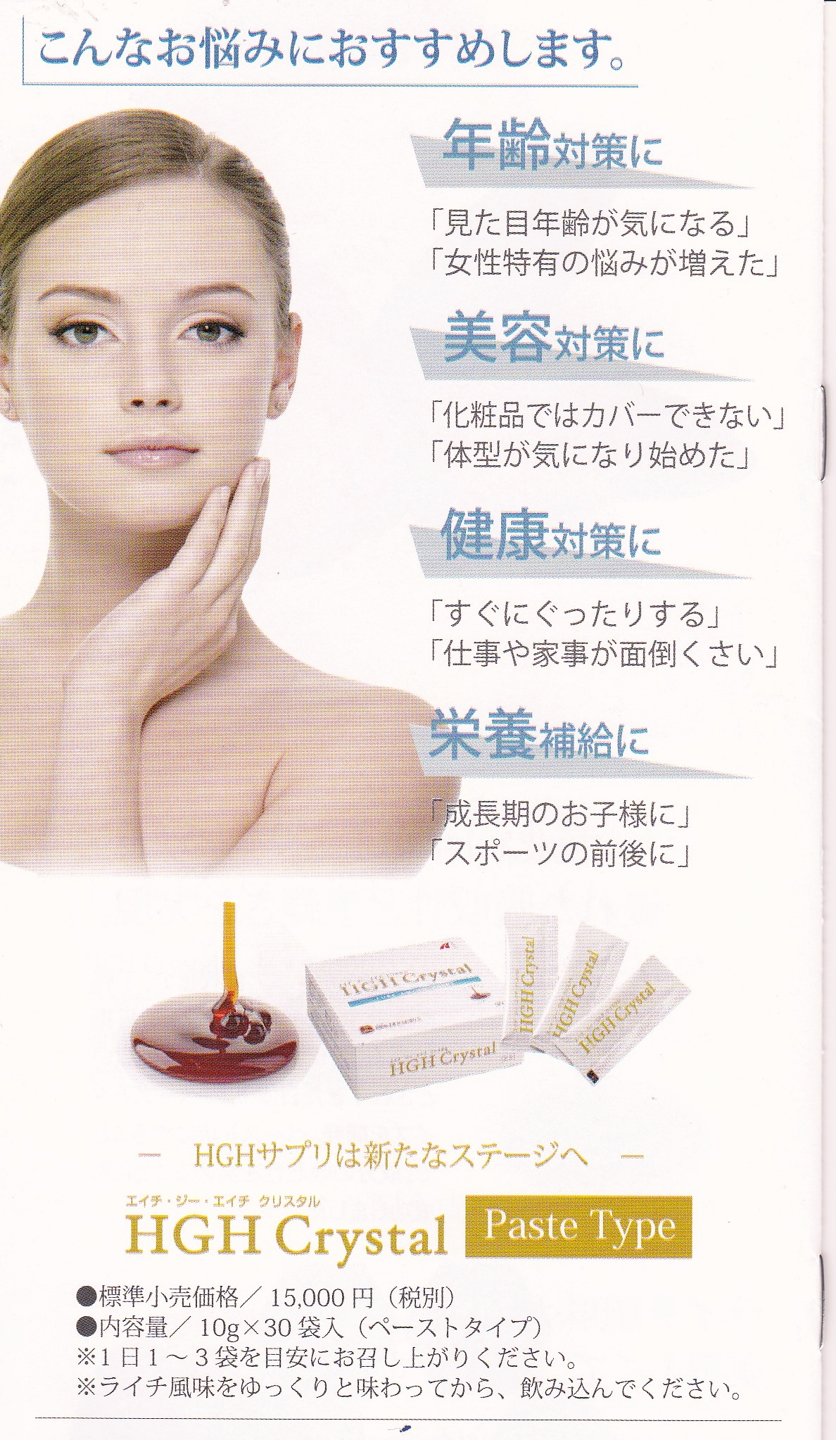 ただの習慣で・・・とか摂らないよりは。。。って感じではないでしょうか。 私自身もそんな感じでしたが、このサプリは全然違う!と即実感しました。 女性ホルモンを増やしてくれるんです。 女性ホルモン投与はガンになるリスクが高まったり副作用も心配ですが、副作用はなく安心 うちのお客様が「産婦人科の先生にコレ飲んでるんですが」と言うと成分をみて「これは良いから続けて飲んで下さい」と言われたそうです。 まず最初に実感するのは「バストの張り」 少し前にバストサプリで生理不順になると問題になったいた物もありましたが、このサプリはむしろ生理不順を正常にしてくれる優れものです。 成長ホルモンも分泌されるのでお肌の張り・代謝促進とまさにアンチエイジング!! 「HGH Crystal」おススメです!! ![]() 2017/11/18